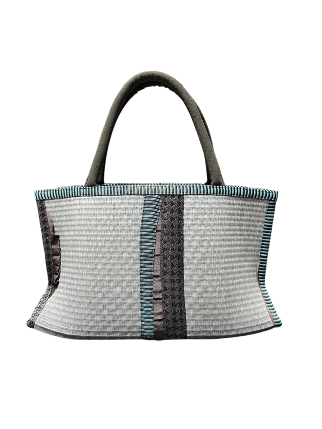 和紙畳カラー&ヘリ 自由カスタム可能©折り上げトート(中)墨染色×高麗ホワイト