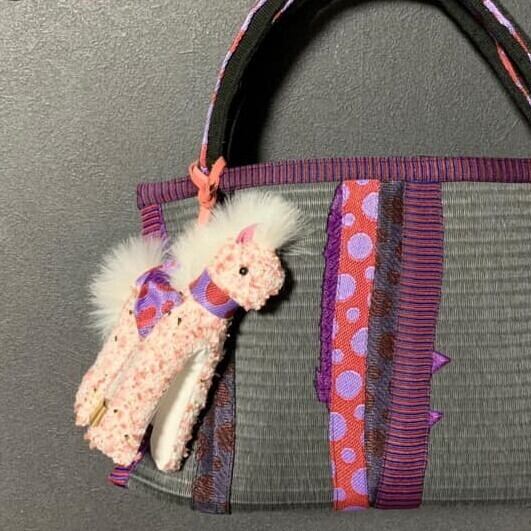 お客様のバッグに使うタタミ縁とお揃いのデコレーションを施した特別ないっしーをお付けできます。